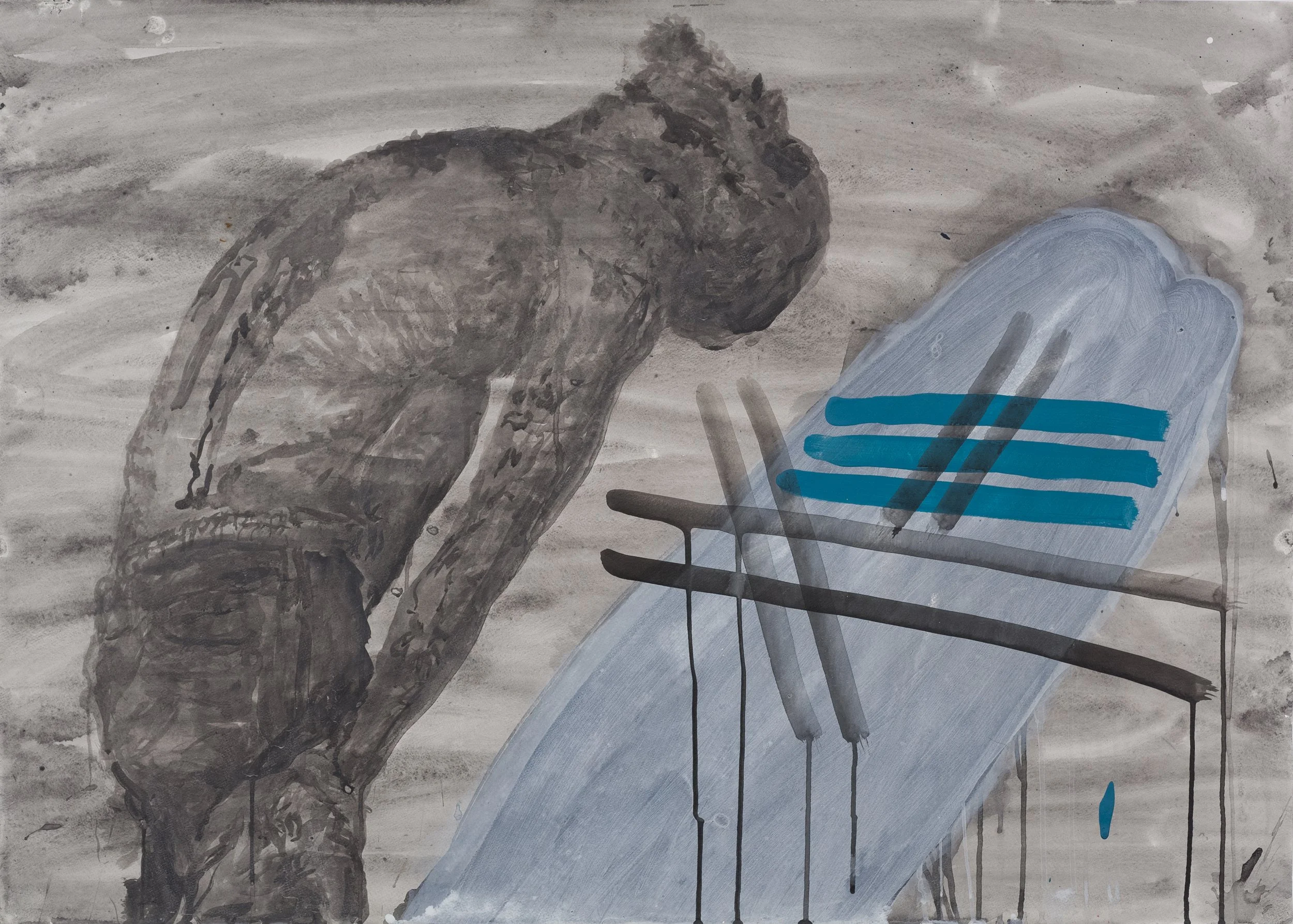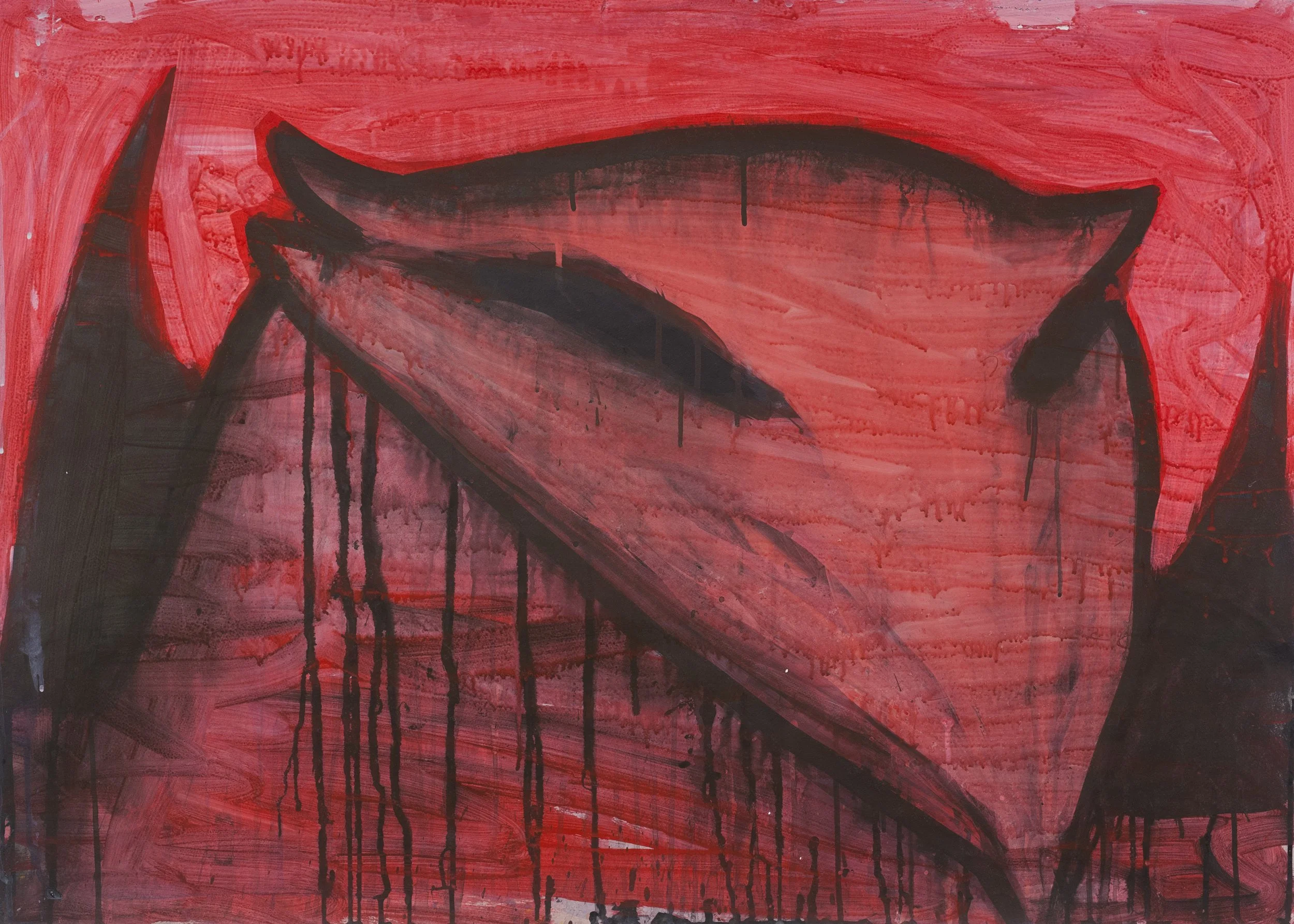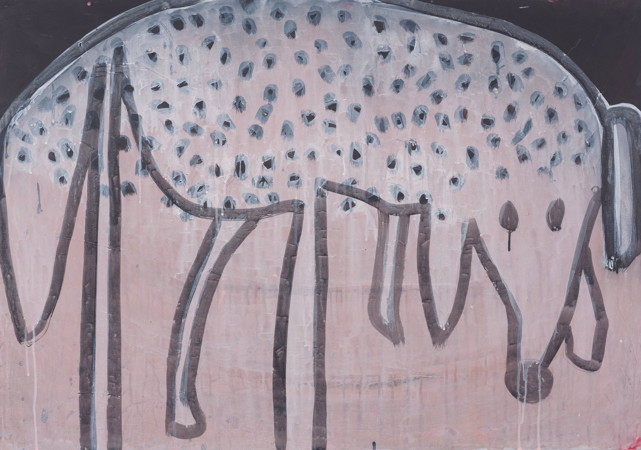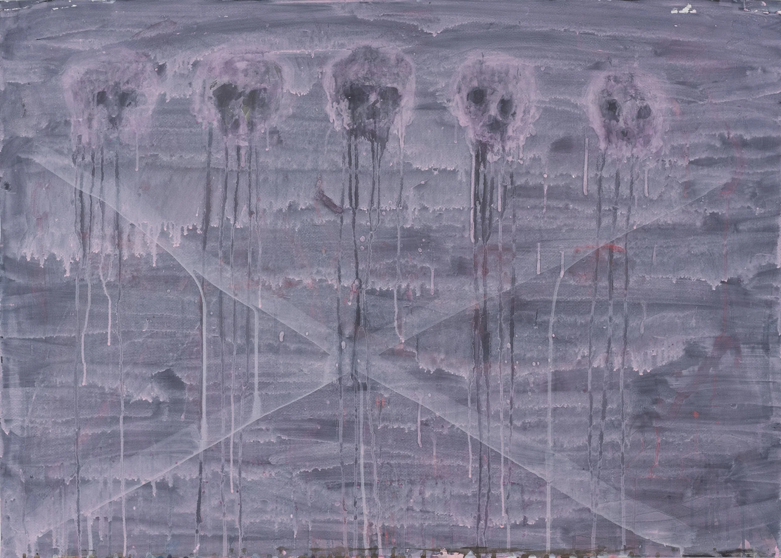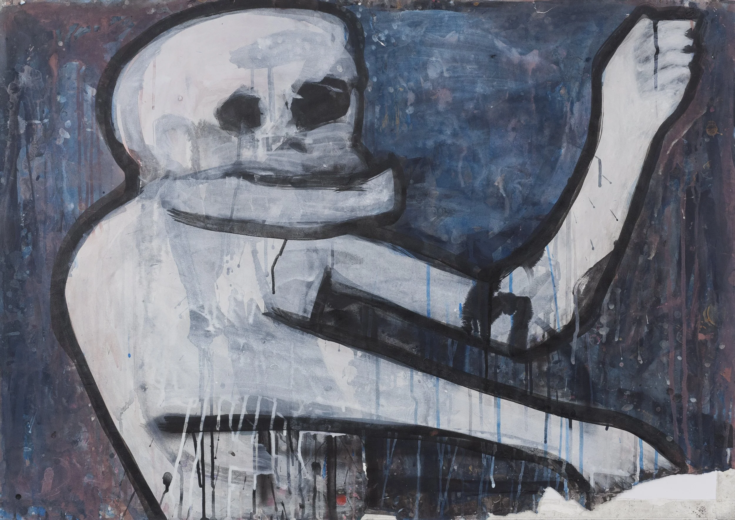 Working on uniform paper formats (100 × 70 cm), I blurred the boundary between drawing and painting, layering and erasing in a cycle of constant transformation. The rawness of this method was central: each work emerged as a reaction rather than a predetermined image, channeling subconscious responses to an environment in flux.