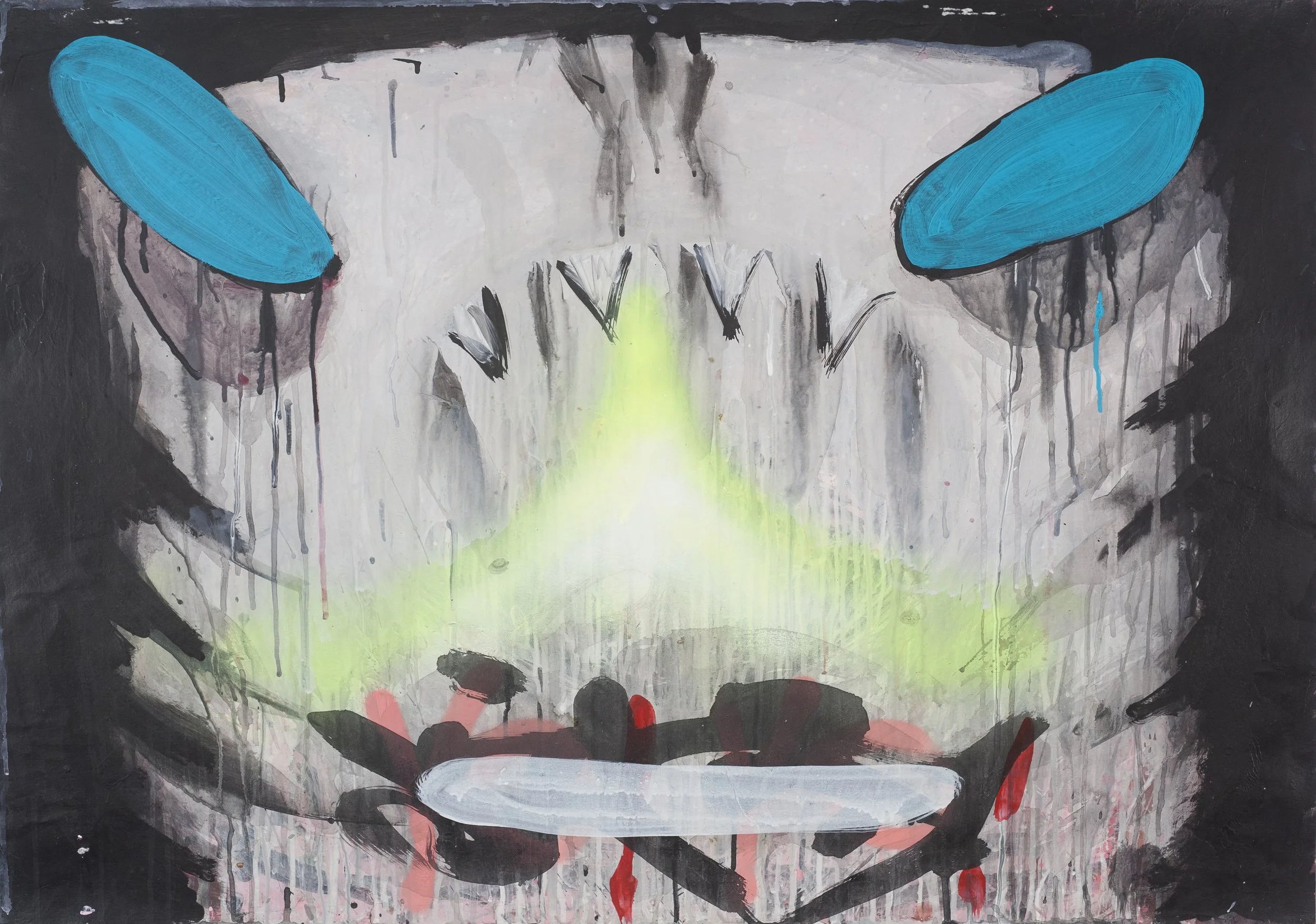 The visual language oscillates between transfiguration, pop iconography, and the raw energy of street culture. Rather than aspiring to assimilation, these works stage an ironic refusal of integration, reflecting the precarious position of a young artist in a context where access to institutions is increasingly restricted.
