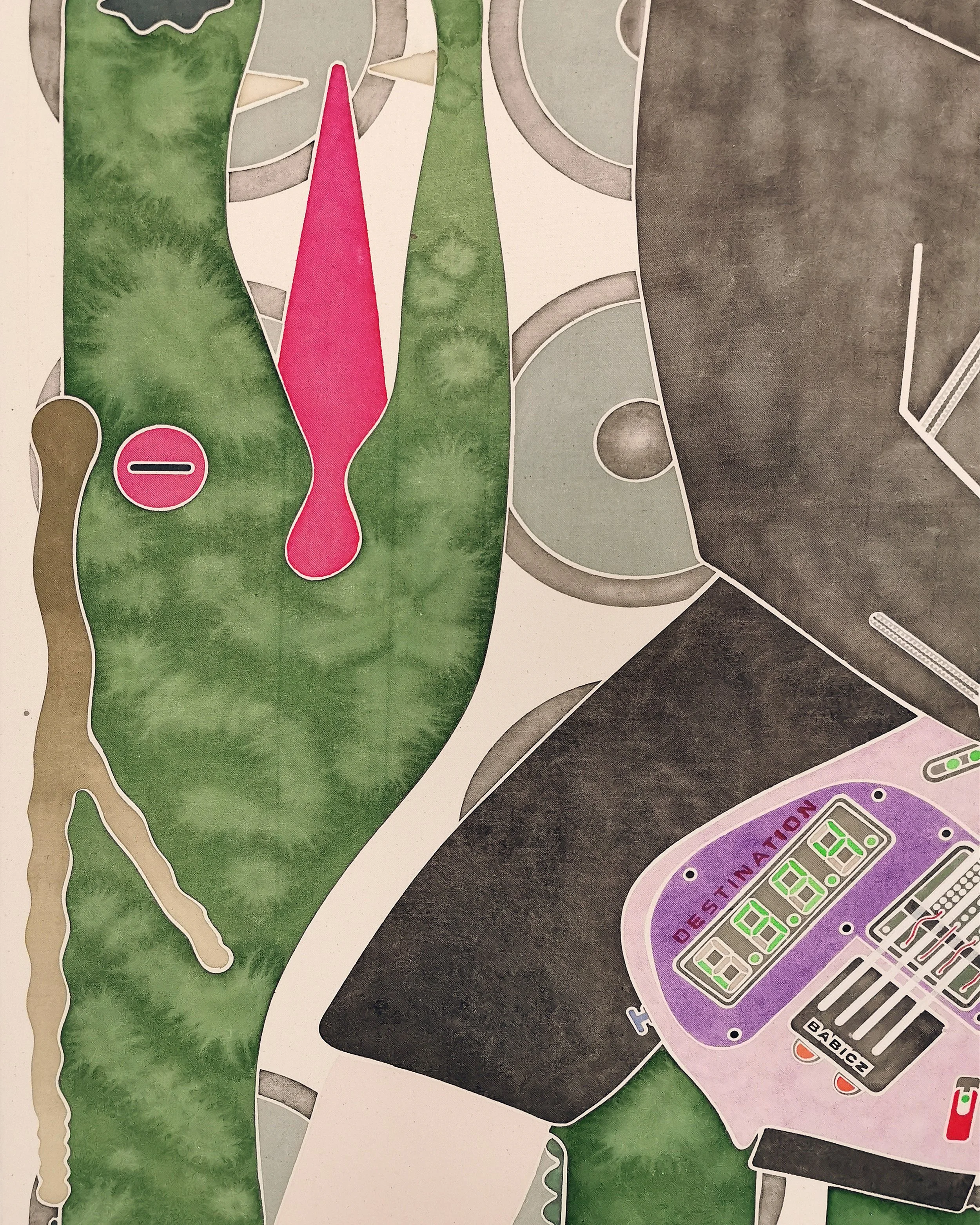 The dragon, traditionally a symbol of demonic threat, here becomes a metaphor for the forces that endanger the autonomy of artistic creation. Instead of a spear, Đurić wields a bass guitar modeled after the one in Back to the Future, transformed into a “time machine.” This hybrid object merges the temporality of music, the mythology of rock, and the speculative technologies of film culture, suggesting that art can act across time and reconfigure cultural narratives.