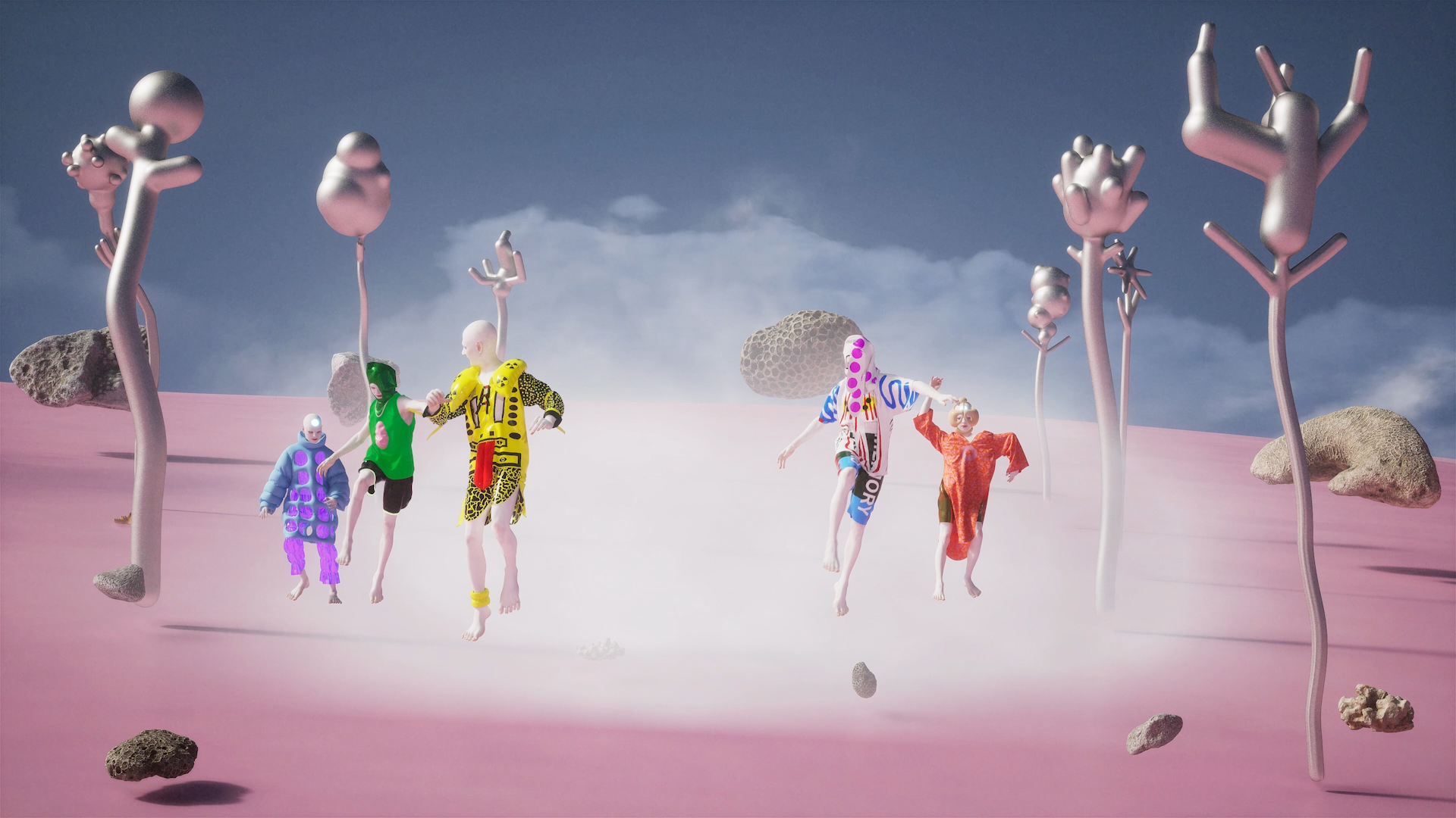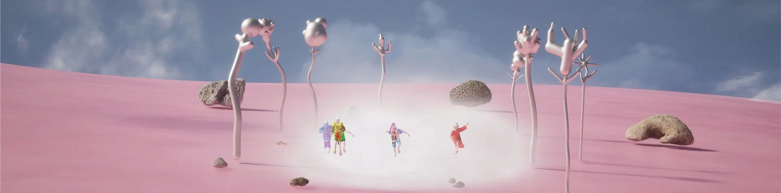 The visual and philosophical language of The Dream draws on diverse artistic influences, weaving together contemporary digital practice with echoes of performance, land art, and historical imagery. A key inspiration is Butoh, the avant-garde Japanese dance form renowned for its intense physical expression and explorations of transformation. Elements of Butoh inform the project’s motion and mood: the avatars move with a slow, contorted grace, their choreography embracing distortion and metamorphosis. This dance influence deepens The Dream’s meditation on existence, as each subtle gesture and pause reflects states of transition—between life and death, human and non-human, material and virtual. The philosophical underpinnings of Butoh, which delves into primal emotion and the body’s impermanence, resonate through the piece, lending it a ritualistic, dreamlike quality.